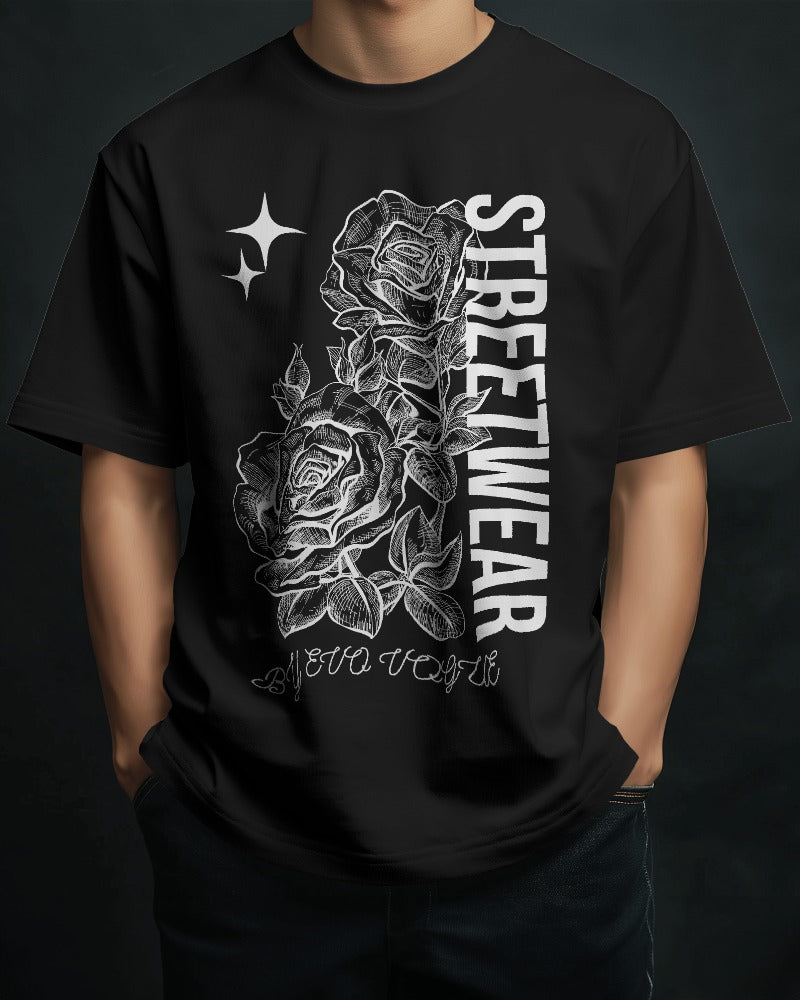 Evo Vogue “Urban Rose” Double-Sided Printed Oversized Tee – 100% Pure Imported Premium Cotton