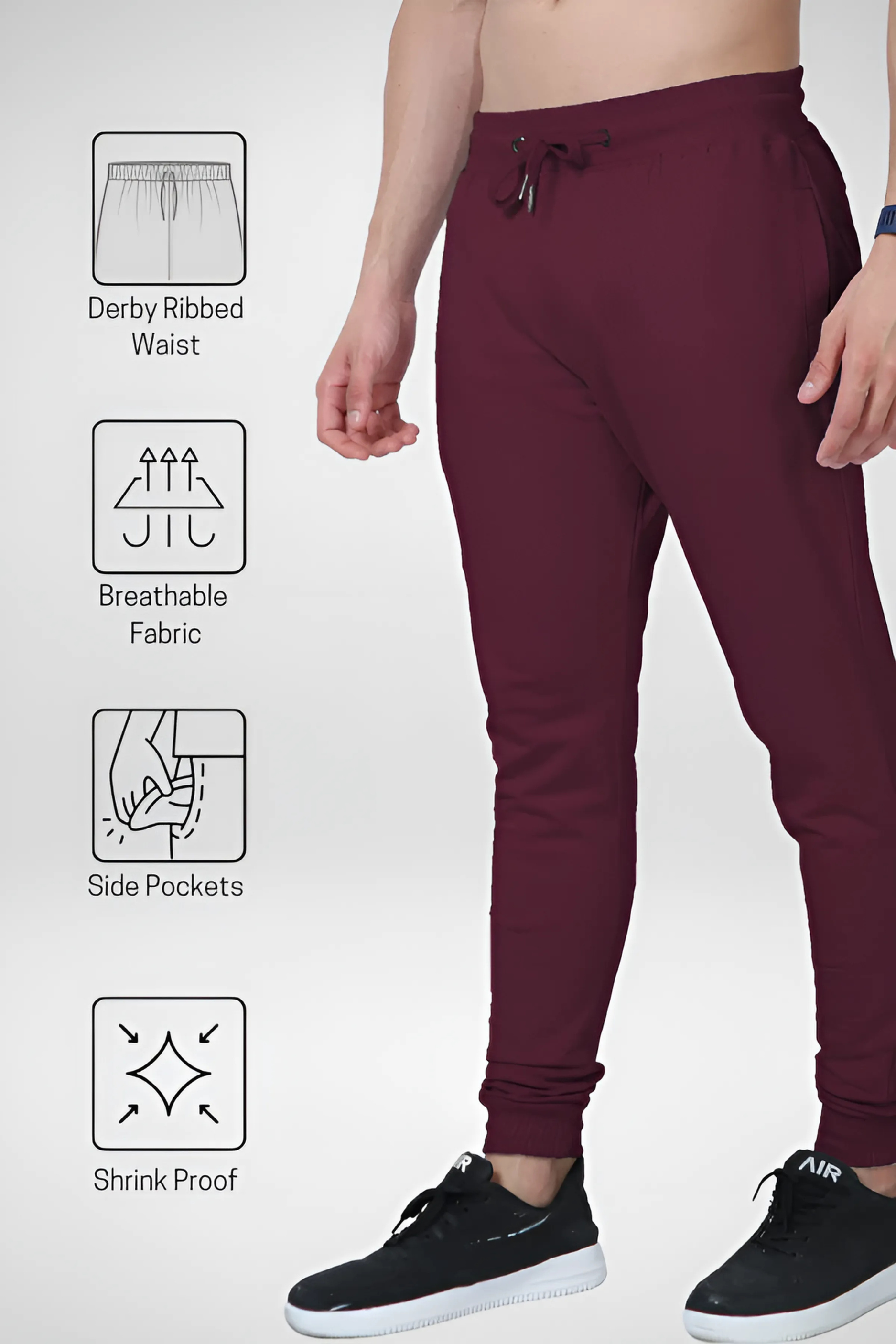 Designed as the perfect bottom-wear partner to Evo Vogue’s premium oversized tees and hoodies, these joggers offer a streetwear-meets-luxury vibe. The rich maroon tone makes a bold yet versatile statement, easily pairing with monochromes or neutrals for a balanced look.