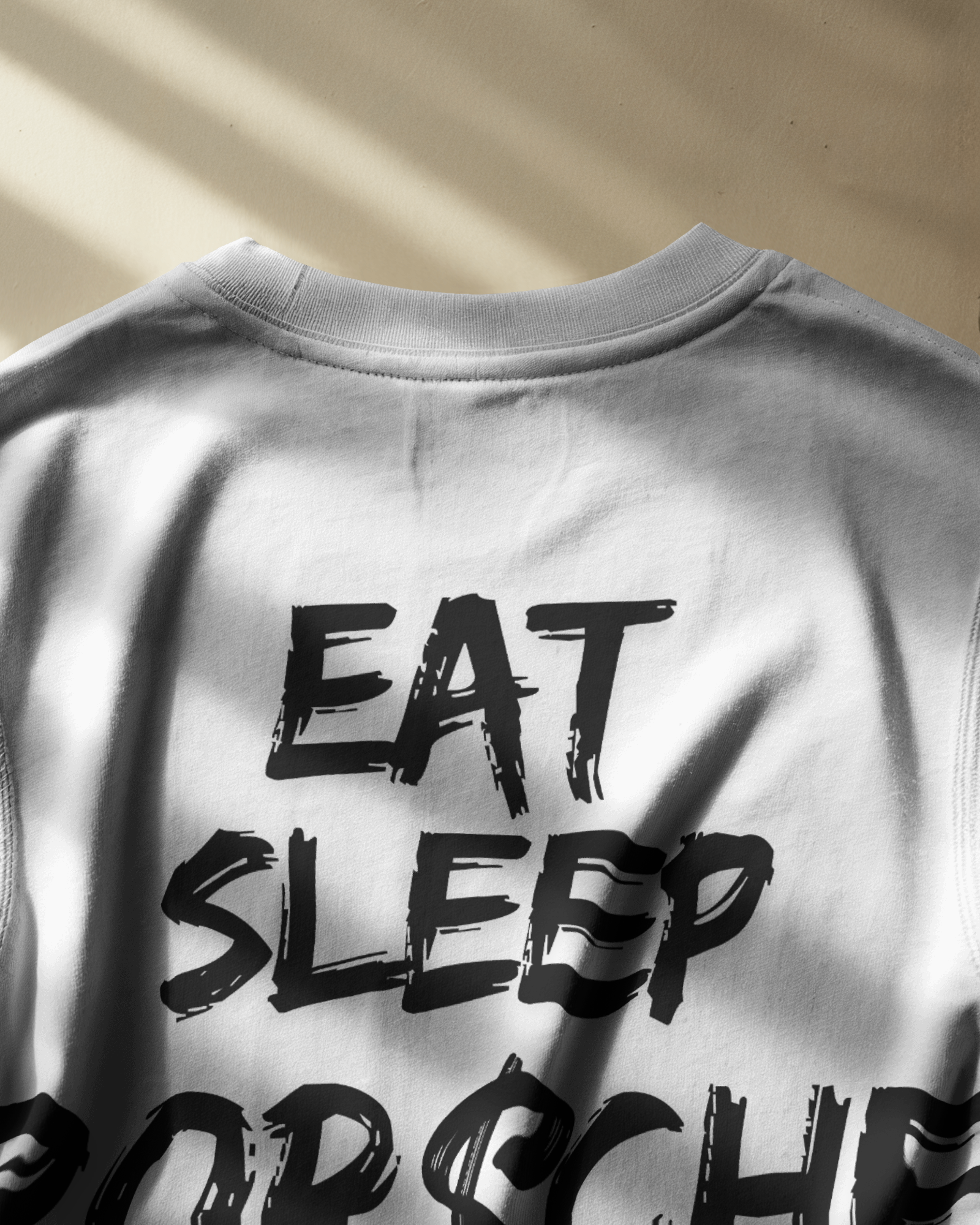 Shift into the fast lane of fashion with the Eat Sleep Porsche Repeat Oversized T-Shirt. Featuring bold graffiti-style typography and a cheeky message for speed chasers and luxury dreamers, this tee is for those who live to race, rise, and repeat.