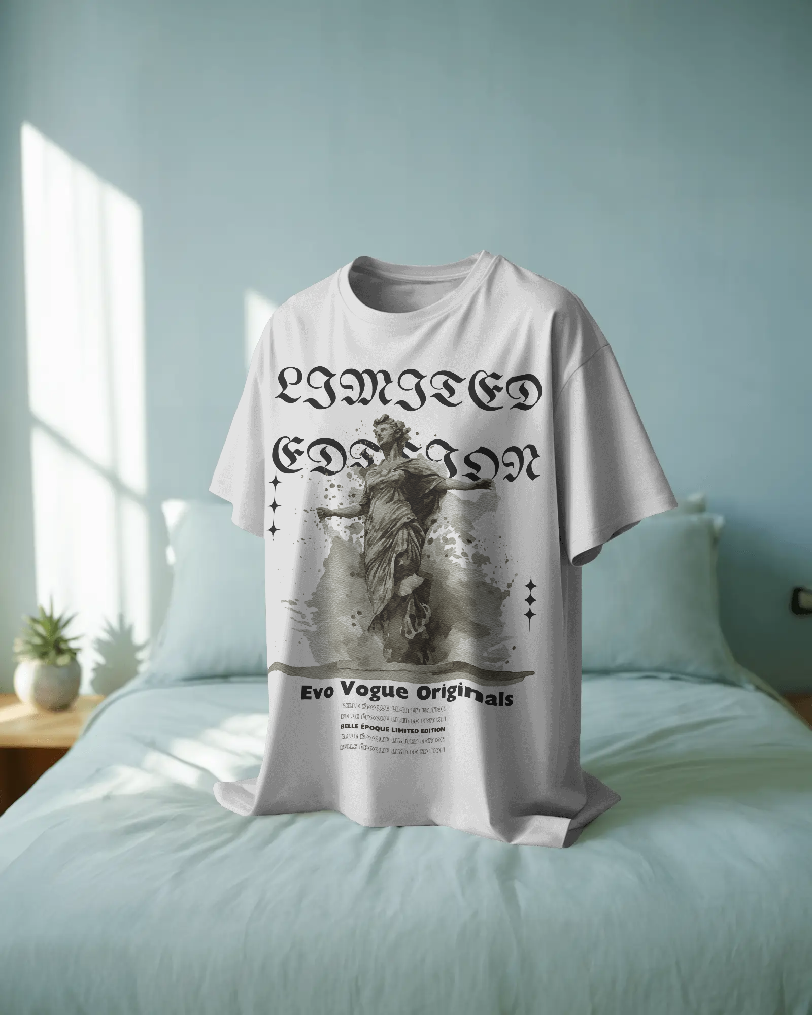 Evo Vogue designs with purpose — where timeless influence meets cultural evolution. “Belle Époque Muse” reflects our ongoing commitment to crafting pieces that bridge art, identity, and wearability. Romantic yet grounded, nostalgic yet now — this tee is for those who inspire without effort, and express without boundaries.