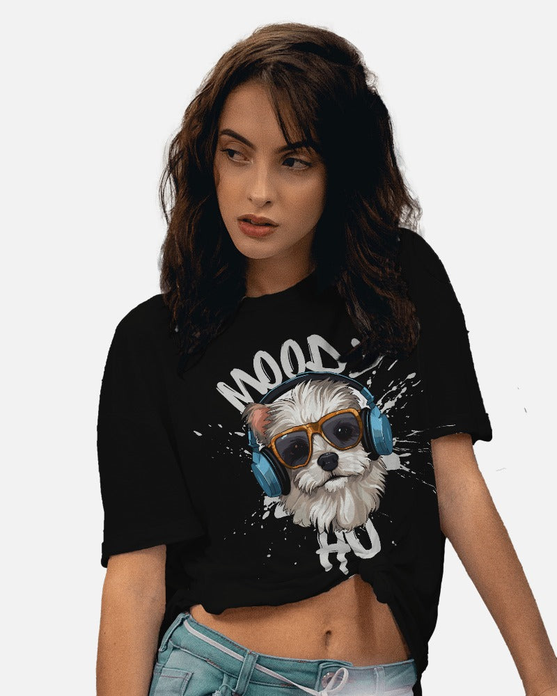 Show off your playful side with the "Moody Hu" Oversized T-Shirt from Evo Vogue's "Moody" Collection. Perfect for those who love to mix a touch of humor with style, this tee features an adorable graphic of a dog sporting cool sunglasses and headphones, capturing that effortlessly chill vibe.