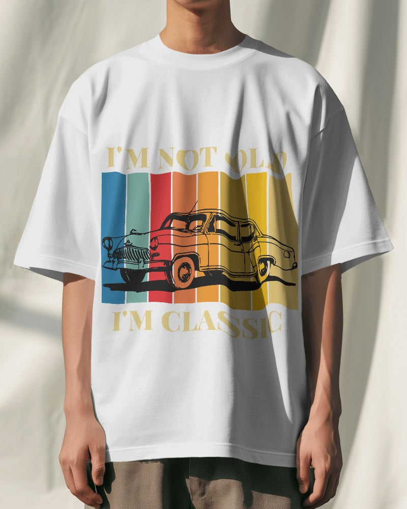 Elevate your wardrobe with the timeless charm of our "I'm Not Old, I'm Classic" Oversized T-Shirt from Evo Vogue's Manual Drivers Collection. Crafted from 240 GSM 100% premium cotton, this t-shirt embodies comfort, style, and a hint of nostalgia. The vibrant retro design celebrates the classic era, making it a perfect statement piece for those who appreciate vintage vibes with a modern twist.